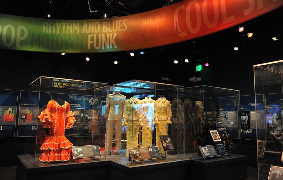 This exhibit celebrates the legendary Apollo Theater in Harlem by bringing together stellar artifacts from African American entertainers, including the Supremes’ dresses, Louis Armstrong’s trumpet, B.B. King's guitar "Lucille" and Michael Jackson's "Beat It" hat and dancing shoes. Rich with super-scale graphics, environmental lighting effects and media, the exhibit first opened at the National Museum of American History, then went on the road to three more venues, including the Museum of the City of New York. H+R was tasked with designing graphics, casework and media installations that could be readily transported in modular crates by Smithsonian Institution Traveling Exhibition Services.